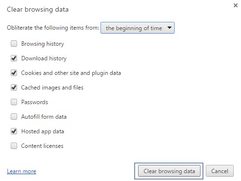 4. A new window opens up, make sure you select the options as shown on the image below and then click on "Clear Browsing Data".